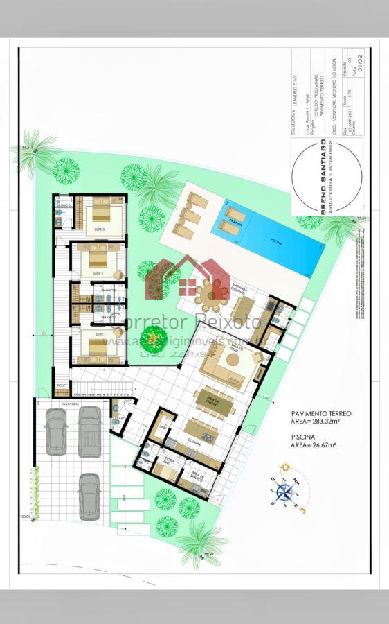 - Projeto diferenciado e predominantemente térreo, com 400 metros de área construída, feito pelo arquiteto Breno Santiago;