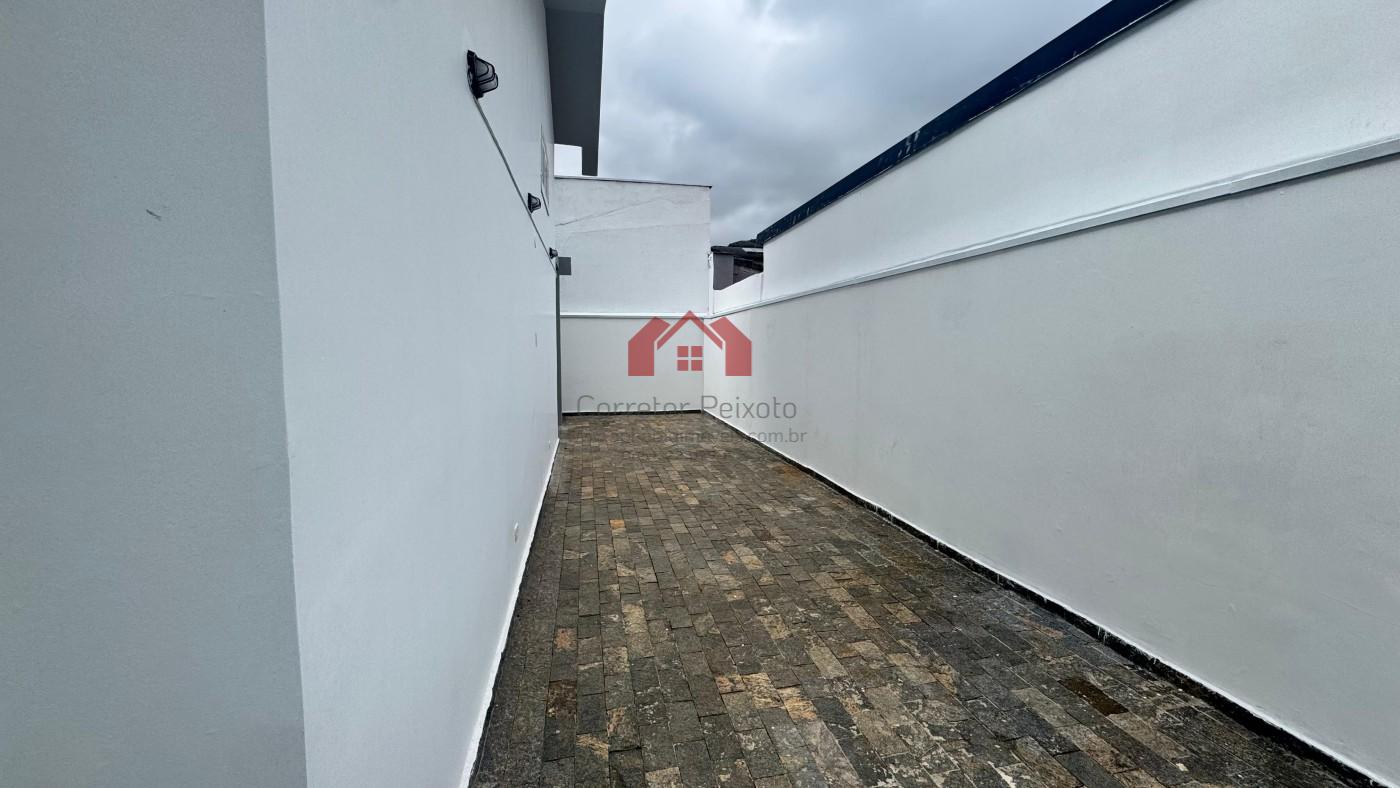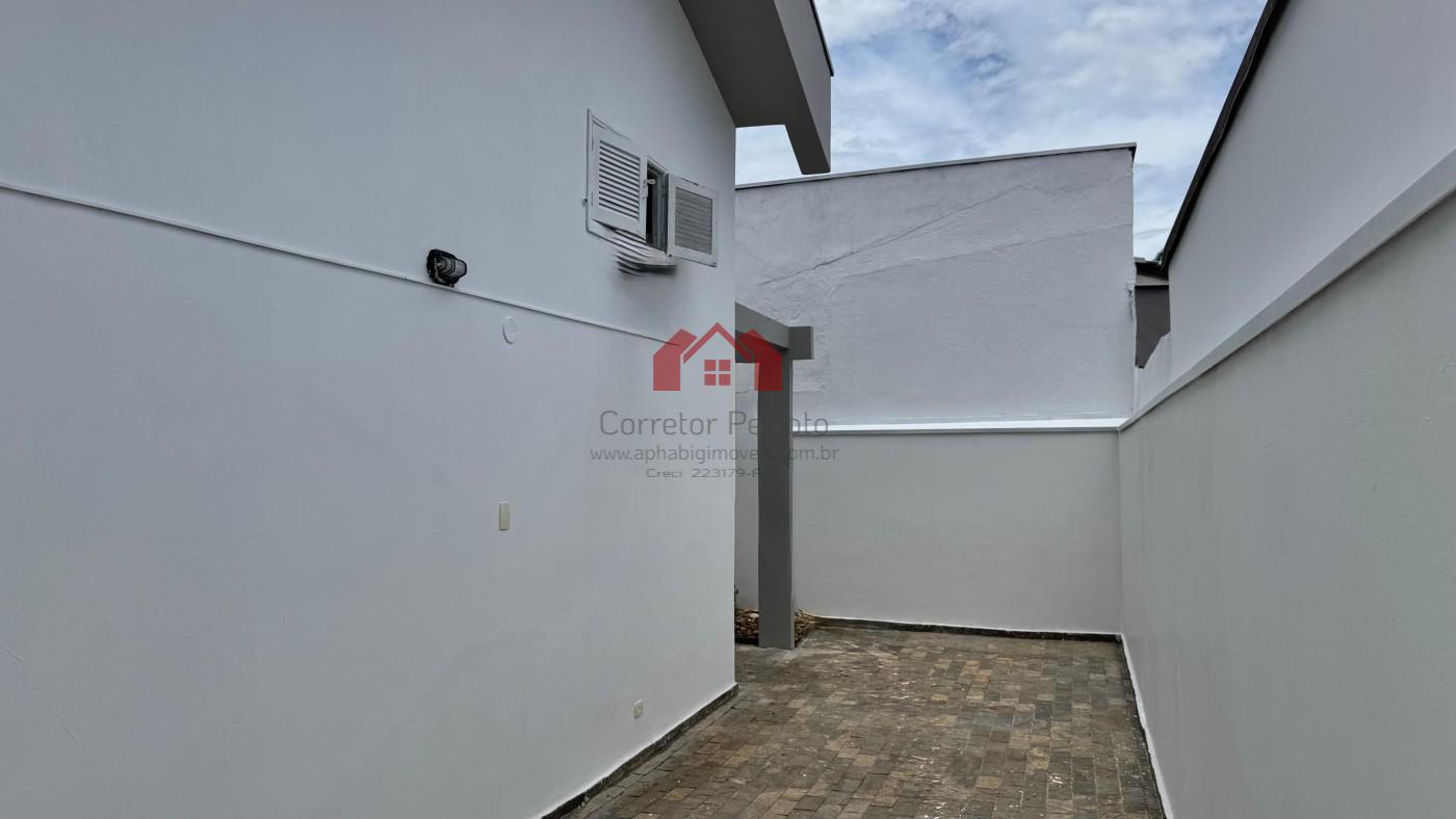 Área externa de fácil manutenção, sem piscina.
