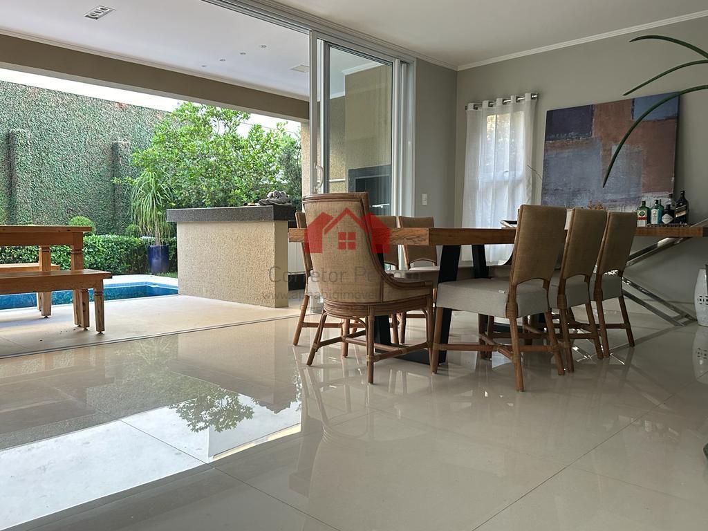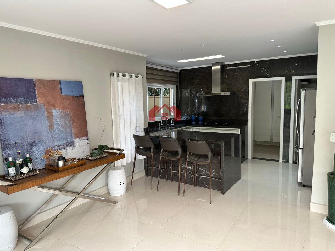 Com 5 dormitórios, sendo 5 suítes, possui 6 banheiros, 4 vagas de garagem, 1 sala, encontra-se mobiliado, localizado em condomínio.