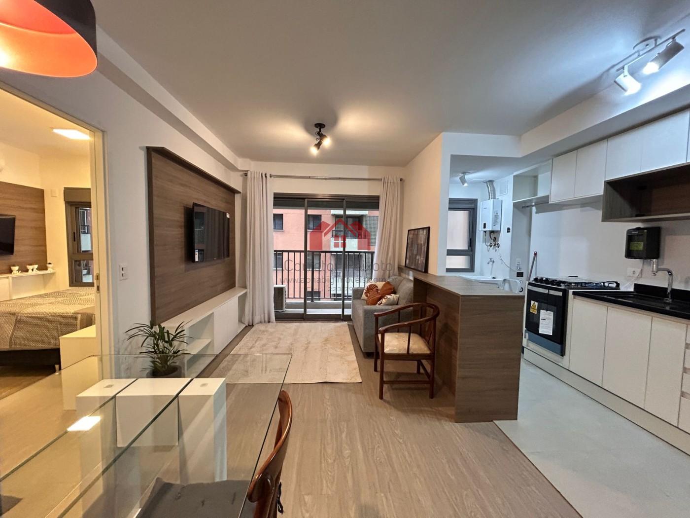 Ref: AP00143P, bairro Alphaville Centro Industrial e Empresarial/Alphaville., 1 dormitório, sendo 1 suíte, 1 banheiro, 1 vaga de garagem, mobiliado, área total 52,00 m², área útil 52,00 m²