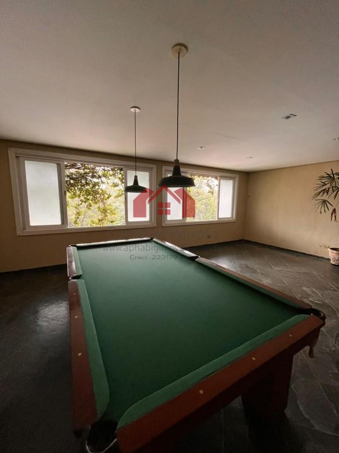 Dispõe de área de lazer completa, incluindo piscina, espaço com churrasqueira e salão de jogos equipado com mesa de sinuca. A residência também possui sala de TV com telão, proporcionando uma experiência diferenciada de entretenimento.